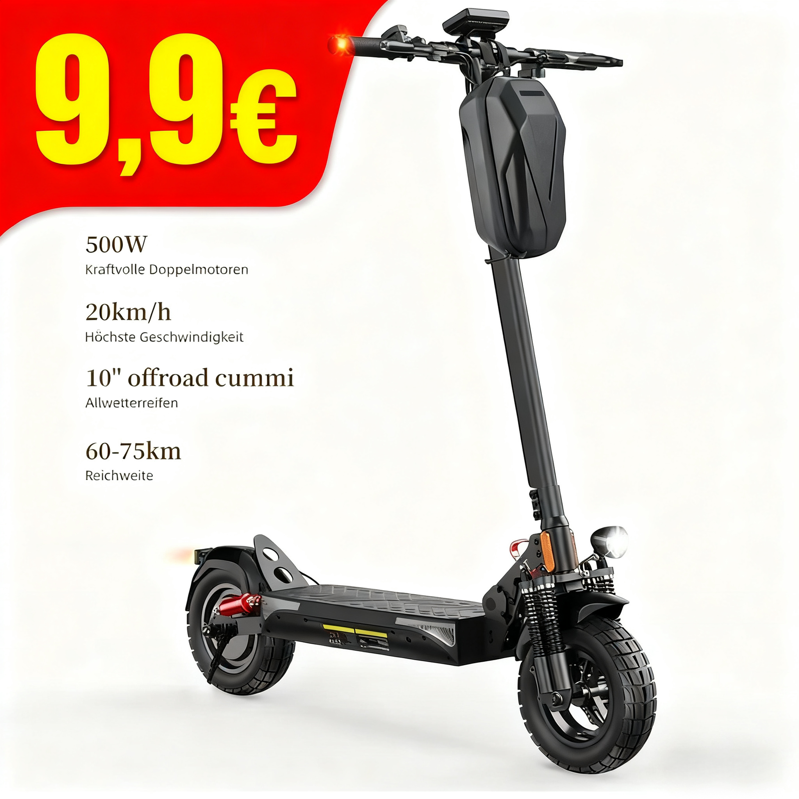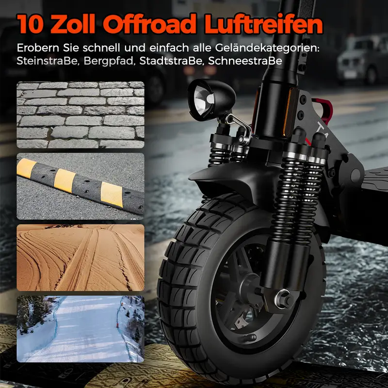 E Scooter mit Straßenzulassung, Klappbarer Elektroscooter,10-Zoll Luftreifen für Offroad-Elektroroller,60-75 km Reichweite,4 Stoßdämpfer,Höherwertiger E Roller.